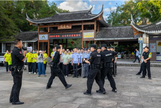 此次综合演练涵盖了火情报警、应急响应、人员疏散、初期扑救、医疗救护、持械袭击、周旋对抗、妥善处置、解救人质、紧急救治等环节,多部门协同作战,检验了景区应急预案的科学性和可操作性。期间,连城县消防救援大队队员向景区员工介绍了火灾应急知识及正确逃生方法,详细讲解了应急设施设备的正确使用技巧。连城县公安局反恐办同志教授了反恐应急处置知识及器械使用方法。演练结束后,总指挥、景区管理科科长林安对本次综合演练进行点评。他指出,此次演练全面检验了冠豸山景区应对突发事件的指挥协调能力和应急处置能力,达到了预期效果。“国庆黄金周即将来临,景区安全责任重大。通过此次演练,我们进一步熟悉了应急流程,锤炼了救援队伍,为保障游客安全打下了坚实基础。”林安总结道。